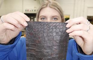 2020 BA(Hons) 3D Design and Craft graduate Imogen Gray (pictured below) won the New Designer of the Year Award plus Environmental Design Award from Creative Conscience and the Business Design Centre for inventing a method to take leather scraps that previously would have been consigned to landfill, and repurposing them into a new material which improves on the natural limitations of leather thanks to its ability to be cast in moulds.