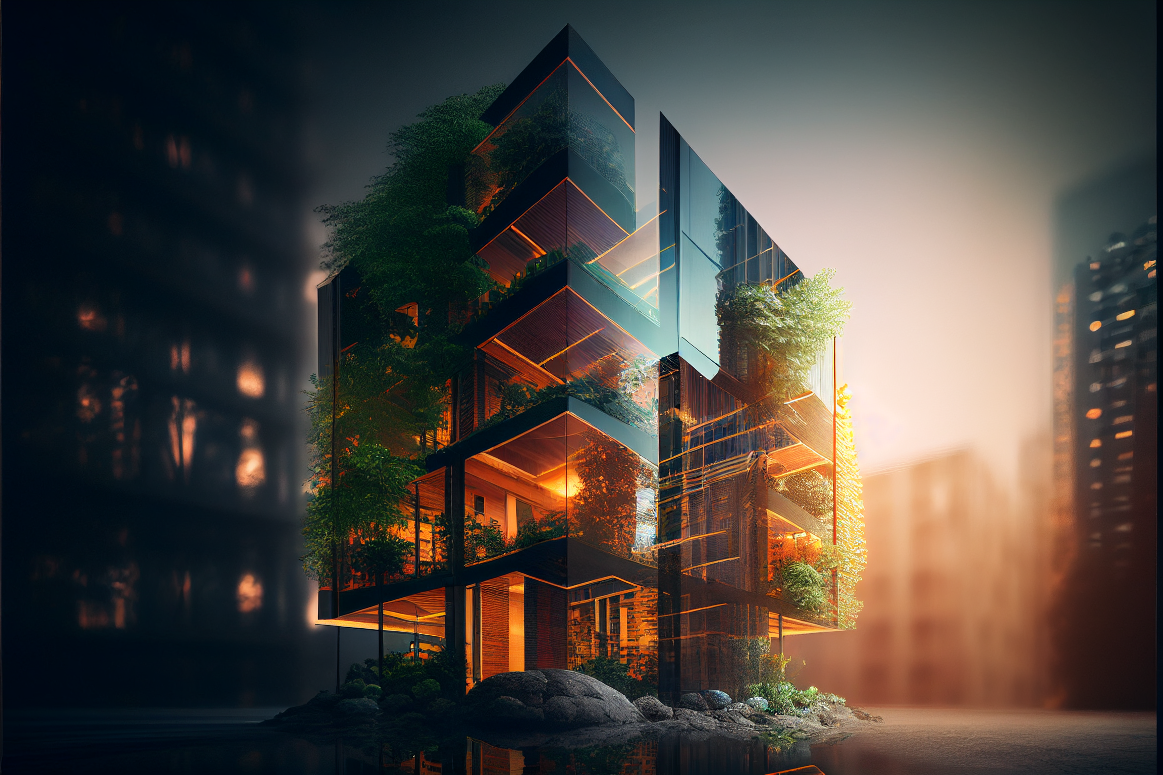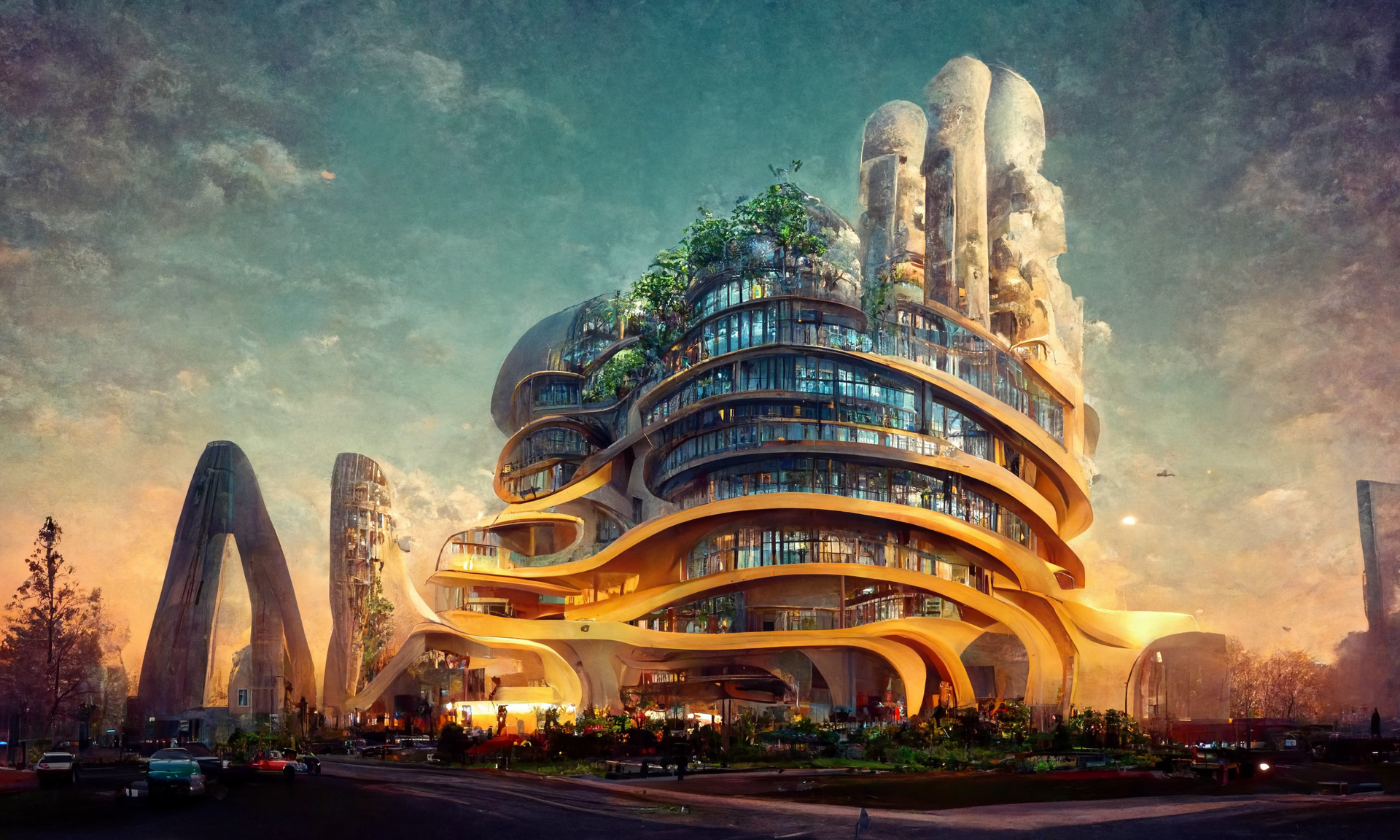 An exhibition of Artificial Intelligence (AI) rendered visions of the built environment that integrates the natural world opens this week in Brighton.